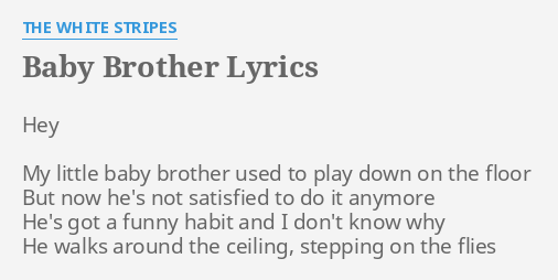 My little baby brother used to play down on the floor But now hes not satisfied to do it anymore Hes got a funny habit and I dont know why He walks around the ceiling stepping on the flies. Baby Brother The White Stripes. I also would li. 412 views added to favorites 9 times. My little baby brother used to play down on the floor But now hes not satisfied to do it anymore Hes got a funny habit and I dont know why He walks around the ceiling stepping on the flies. The White Stripes - Baby Brother tradução Letra e música para ouvir - Hey My little baby brother used to play down on the floor But now hes not satisfied to do it anymore Hes got a funny habit and I dont know why He. Baby Brother - Letras de The White Stripes. Baby Brother The White Stripes. Please note that our catalog only lists songs that weve set up within our system.