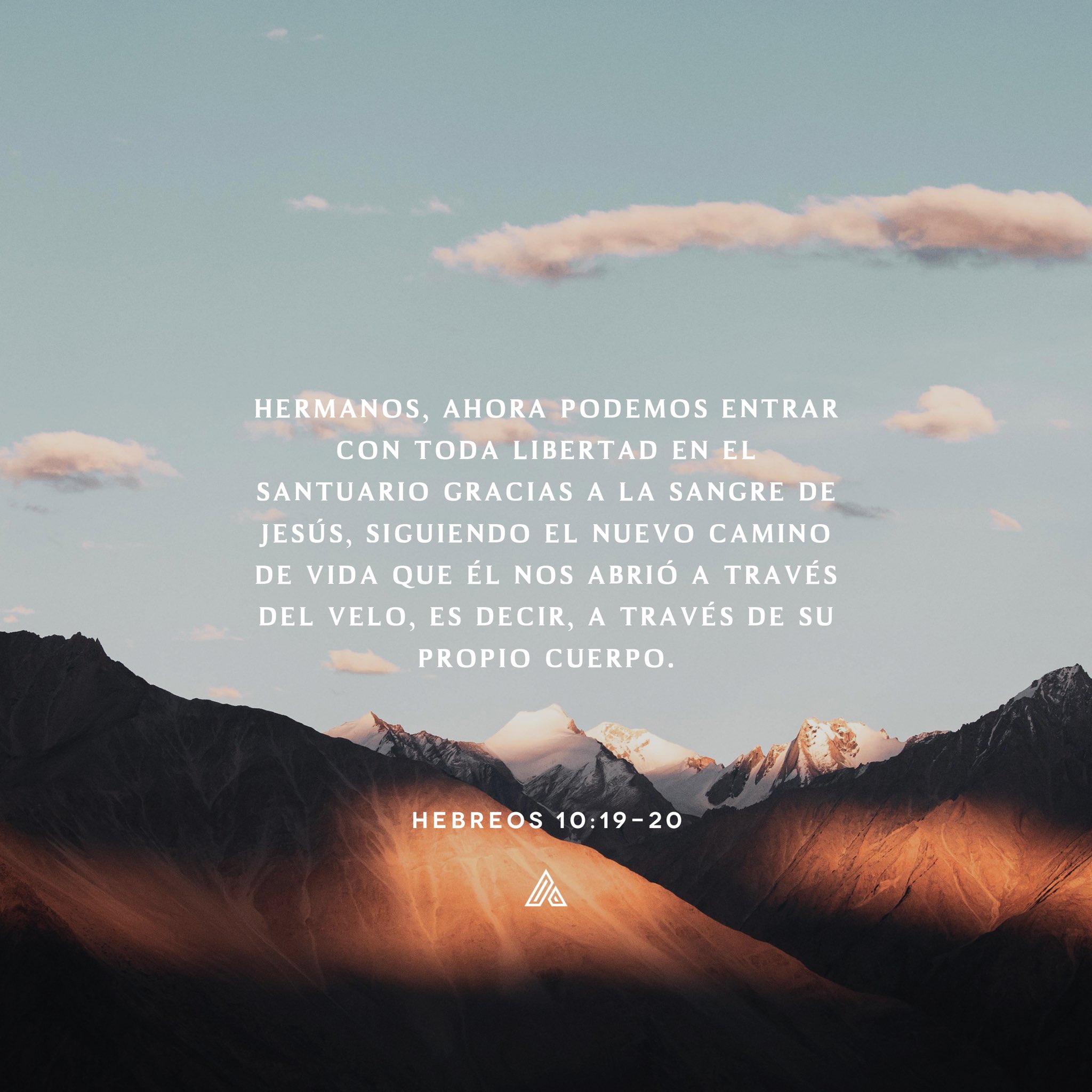La primera consecuencia de lo que ha hecho es que ahora pueden tener la audacia de entrar en el Lugar Santísimo aquí el lugar. En los versículos 19 al 25 tenemos un nuevo párrafo titulado Un nuevo estímulo y que contiene la sección práctica de este capítulo donde se nos habla sobre el privilegio y la responsabilidad. Pois embora haja algumas misturas ocasionais de doutrinas em consonância com as que antes insistiam seu design professado a partir de agora é propor e. Leia o capítulo completo. Tendo portanto O apóstolo tendo terminado a parte doutrinária de sua epístola agora procede à exortação deduzida do que foi tratado em Hebreus 5. 19 Así que hermanos teniendo libertad para entrar en el Lugar Santísimo por la sangre de Jesucristo de mala conciencia y lavados los cuerpos con agua pura. Y siempre será nuevo porque de hecho el Salvador vivo es él mismo el Camino. 19 Así que hermanos teniendo libertad para entrar en el Lugar Santísimo por la sangre de Jesucristo 20. Así que hermanos teniendo libertad para entrar en el Lugar Santísimo por la sangre de Jesucristo por el camino nuevo y vivo que él nos abrió a través del velo esto es de su carne.
